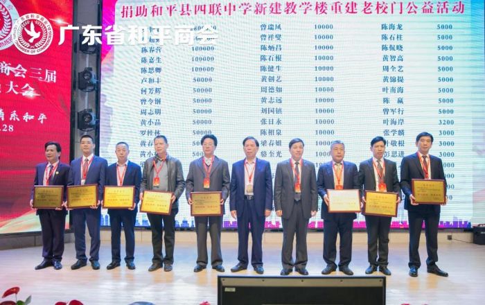 2019年12月28日,广东省和平商会举行了四联中学教学楼捐赠仪式并召开广东省和平商会三届三次会议,和平籍在国内投资从事生产经营活动的企业家和已在和平投资经商的客商两百多名企业家在和平牵手共同开启新篇章。王理宗会长应邀携多位商会和平籍企业家回到家乡参加了活动。
