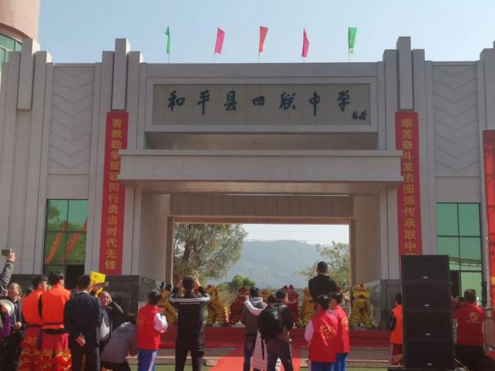 2019年12月28日上午,和平县四联中学校门、耀明楼落成剪彩仪式在四联中学隆重举行。原广东省政府参事、新闻出版局局长陈俊年、原河源市政协主席陈志干、原河源市人大常委会副主任曾瑞凤、和平县常务副县长陈志斌、彭寨镇镇长徐智登、必威beway副会长梁智君、曾令钢等必威beway和平籍企业家代表、广东省和平商会的会员企业代表、四联中学校友和全校师生近1600人参加本次庆典仪式。