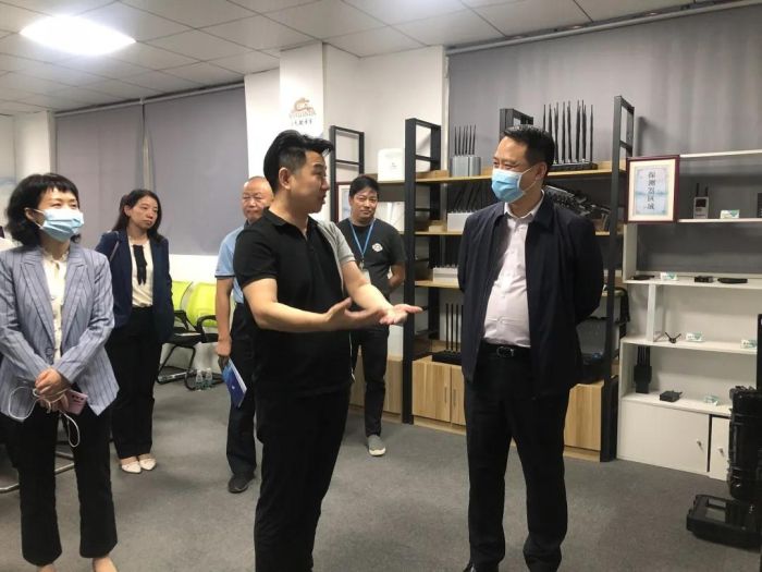 香港水稻集团、深圳东方龙大通信有限公司董事长周涛向余金富常委一行介绍公司产品及应用场景。