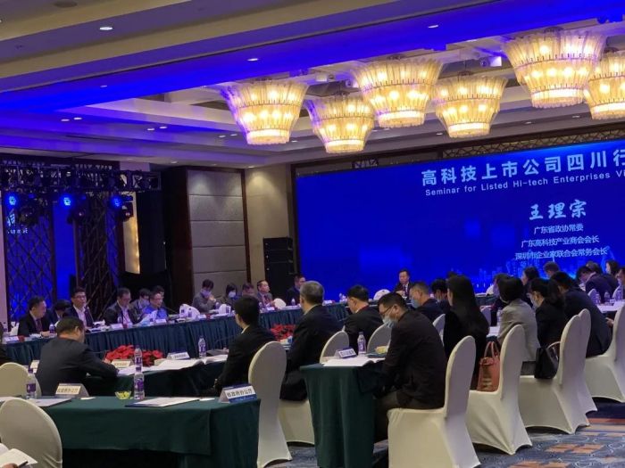 11月18日下午,在“知名企业四川行”活动期间,理宗会长出席了由四川省人民政府主办,四川省经济合作局、四川省科学技术厅、宜宾市人民政府共同承办的高科技上市公司四川行恳谈会,并做为发言代表发言,会议由省经济合作局党组成员、省经济合作促进中心主任谢贤荣主持。