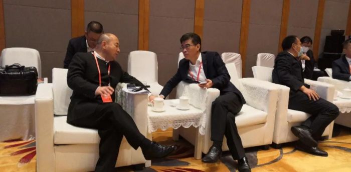 会前,理宗会长与王文银主席交谈
