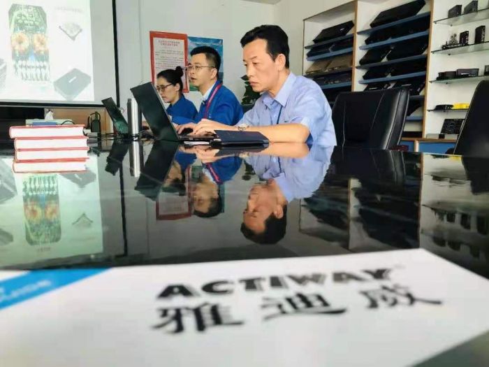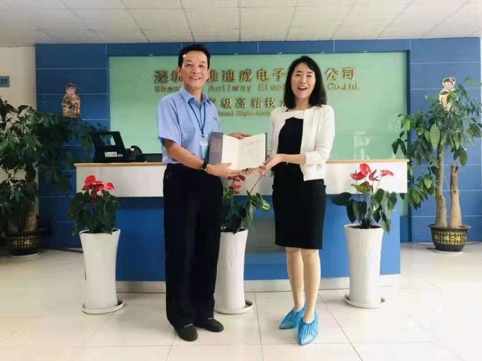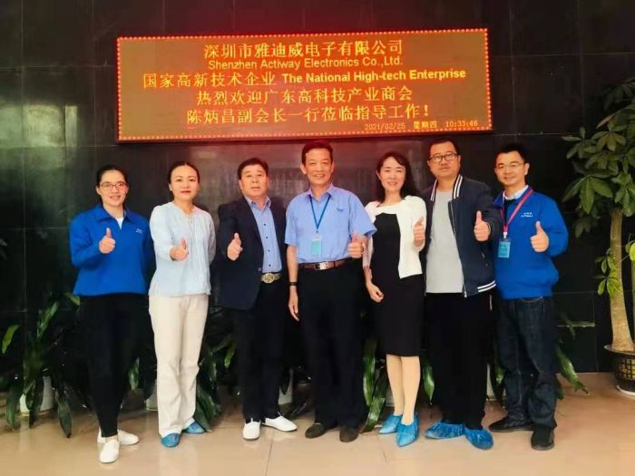 国燕董事长首先带大家参观了公司的展厅,向陈炳昌副会长一行介绍了雅迪威公司的发展历程:公司成立于2002 年,是龙华区首批经济观察重点企业,专业研发、生产和销售功率放大器以及音响等周边产品,同时,也是专业的电子产品OEM、ODM、EMS生产厂家。