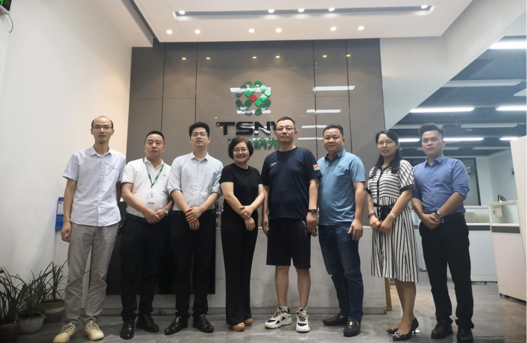 5月18日下午,必威beway执行秘书长兼龙岗办事处主任杨一洲携同新大地口腔总经理熊训军、佛山优赛信息科技技术总监罗柯、商会龙岗办副主任古冬青一行走进广东谛思纳为新材料科技有限公司,受到了谛思纳为刘莉云总经理的热情接待。