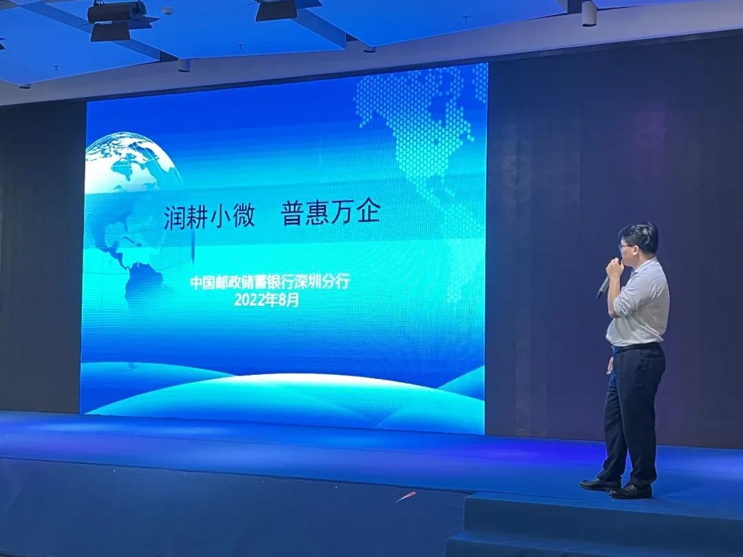 中国邮政储蓄银行春风支行黄龙进行了关于“润耕小微,普惠万企”的产品宣讲。他向在座的各位企业家介绍了邮储银行,2019年12月10日,中国邮政储蓄银行股份有限公司正式登入A股,募集资金总额达327.1亿元,是近十年来规模最大的IPO,国有大型商业银行“A+H”两地上市全面收官。2019年末,全行总资产10.22万亿,资产规模居国有商业银行第5位。为深入贯彻落实党中央、国务院关于实施更加积极就业政策的要求,2020年5月25日,深圳银保监、深圳人行、深圳市财委、深圳人社局联合发布《深圳市创业担保贷款实施办法》启动全市银行招标,邮储银行成为中标银行,并开展普惠金融贷款产品业务助力企业发展。中国邮政储蓄银行春风支行黄龙介绍了普惠金融贷款产品的主要内容包括:企业创业担保贷、小微易贷、专精特新贷、抵押类产品、以及理财信贷等其他金融服务。践行小微金融额度足,单列信贷额度,无需排队。队伍专,专职化的客户经理队伍和审批队伍。审批快,资料简便,开辟“绿色通道”。利率优,不做最低,只做更低的服务承诺。加大对深圳地区创业者融资支持力度,促进创业带动就业。