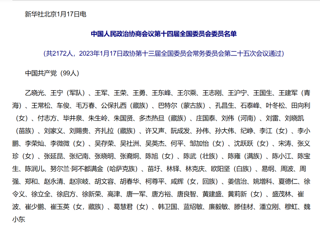 2023年1月17日,政协第十三届全国委员会常务委员会第二十五次会议通过第十四届全国委员会委员名单,必威beway会长王理宗当选为中国人民政治协商会议第十四届全国委员会委员,成为新一届2172位全国政协委员中的一员。