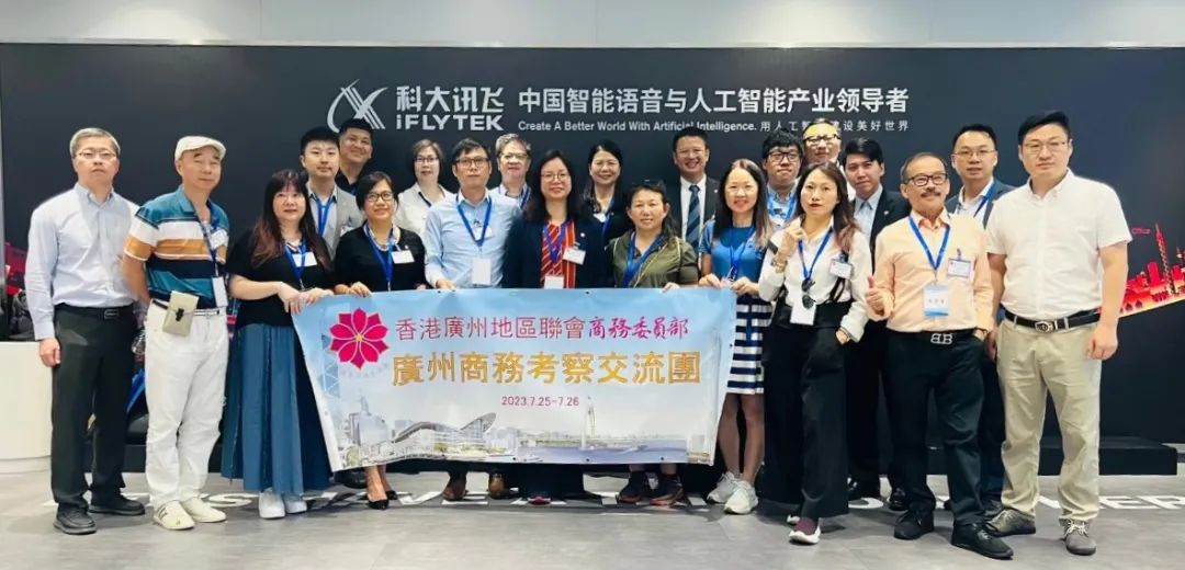 7月25日下午,由广州市工商联联络部二级调研员、穗港澳商会协作负责人黎明率领香港广州地区联会一行20人到访我会会员企业科大讯飞旗下广东爱因智能科技有限公司,由我会王现永执行秘书长、胡义雪副秘书长和爱因智能孙文礼总经理进行热情接待,并参观科大讯飞展厅,领略AI时代加速发展给生活、工作带来的改变。科大讯飞讲解员首先为大家介绍科大讯飞的发展。