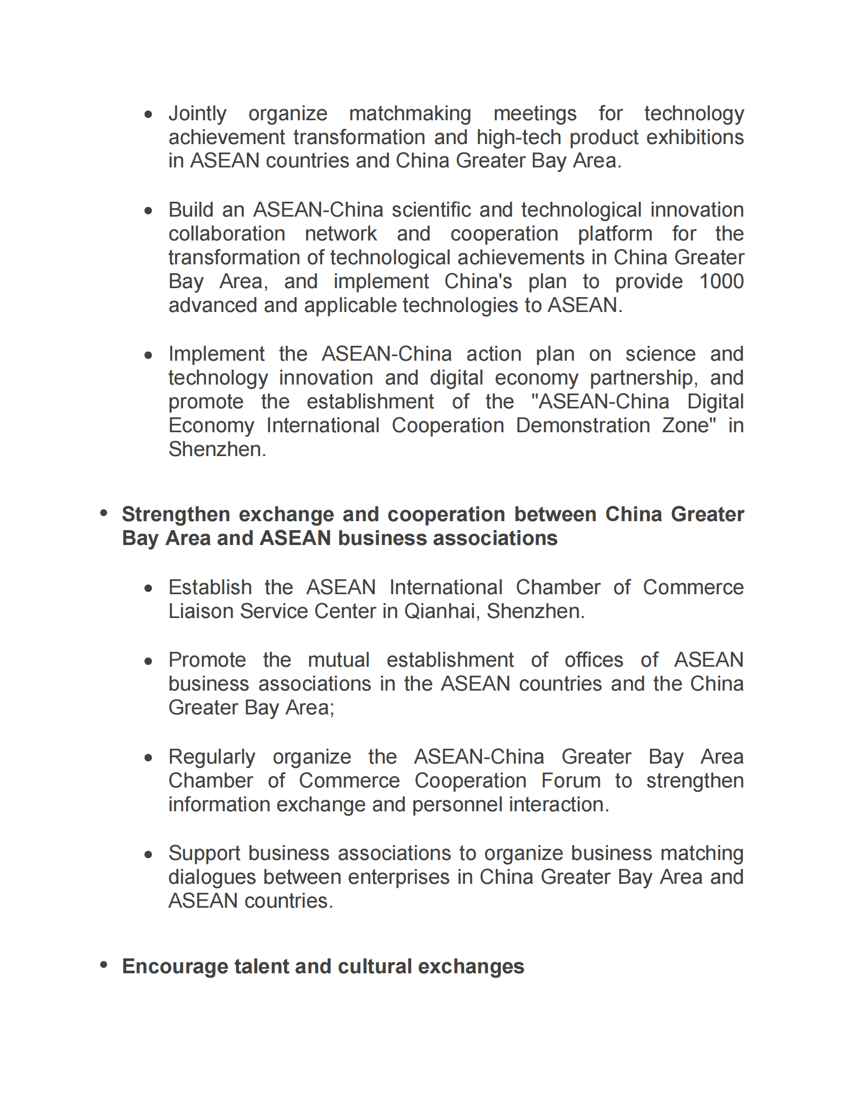 ※支持在大湾区开展面向东盟国家的管理和技术培训项目。