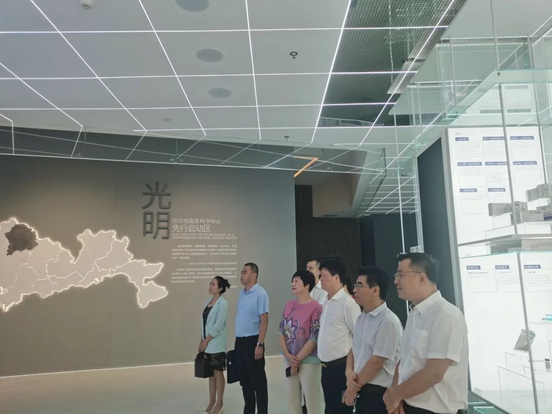 区委常委、副区长沈华新首先带理宗会长一行参观了主题鲜明、极具特色、富有科技感的光明区规划馆。华新常委从光明区的历史文化、发展历程和规划定位为大家勾勒了光明区发展脉络和美丽蓝图,尤其是光明区在建立世界一流科学城特别是国家级创新中心建设方面取得的成就和创新机制,理宗会长高度赞赏。