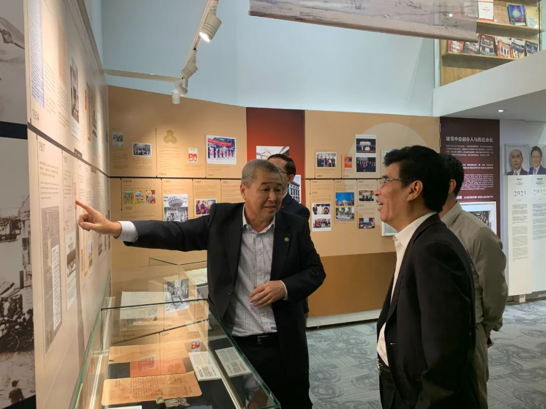 中总秘书长拿督陈镇明首先带考察团参观领航馆,给大家讲解了中总100多年来的历史变迁,成果展示,和对中国的友好见证等。