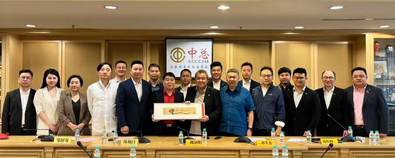 3月15日下午考察团拜访马来西亚中华总商会,总会总秘书长陈镇文拿督、中央理事拿督郑生金等一行接待座谈,双方对推动两会的合作充满信心。陈炳昌会长表达了到马来西亚考察的目的和意义,并对推动筹建中马工业园的倡议进行了深度交流,希望与中总携手,共同搭建中马经贸新桥梁。会上邹舒寄会长提出,希望推动中马的国际贸易新发展,特别在于服务贸易、跨境电商及数字贸易和中国广州商品交易会等事项进行深度合作。