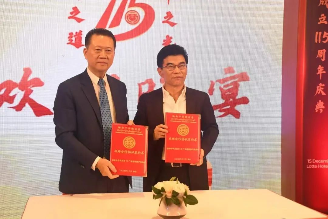12月16日晚,缅甸仰光乐天酒店内灯火辉煌,人声鼎沸,一场盛大的庆典在此隆重举行——缅甸中华总商会迎来了成立115周年的辉煌时刻。来自中缅及全球的政府领导、商界精英、社会各界贤达以及商会会员齐聚一堂,共同见证了这一历史性的荣耀时刻。王理宗会长受邀带队出席庆典,并与缅甸中华总商会会长林文猛签署战略合作协议。